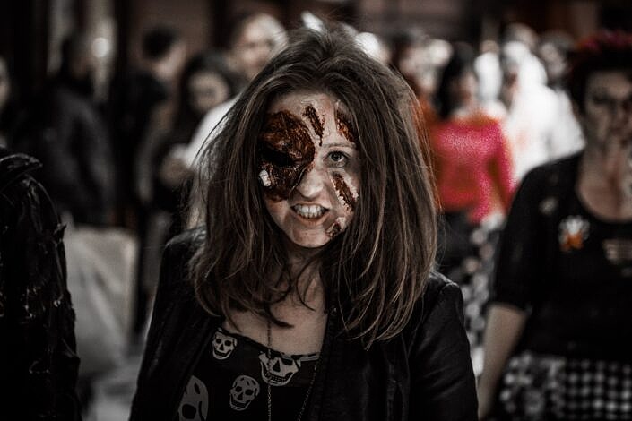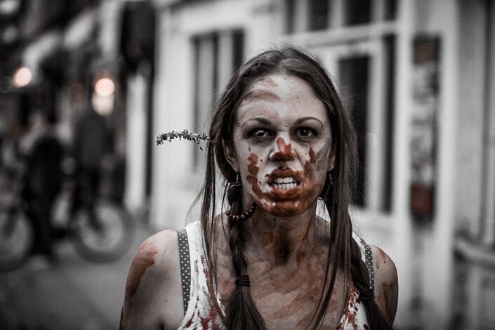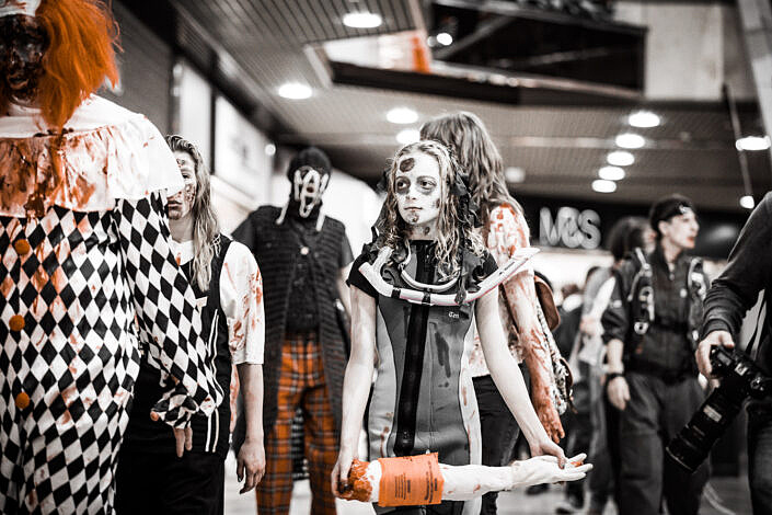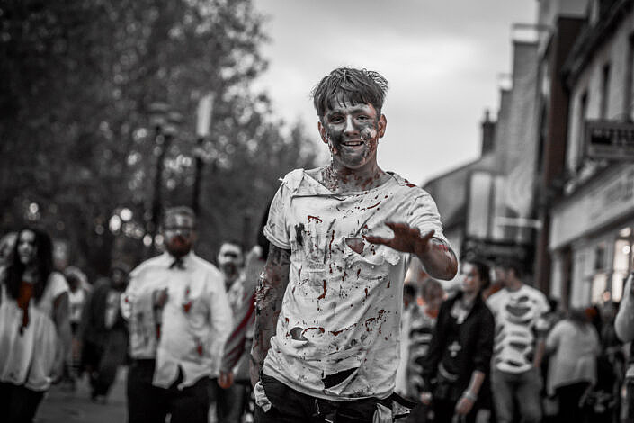 The Peterborough Zombie Walk has very simply become my favourite event of the calendar year to go along to and photograph. Hundreds of zombies took to the streets of Peterborough much to the delight of the growing crowds. Zombies of all ages turn up, from very young child zombies right through to the other end of the age spectrum. What impresses me most about this event is the sheer effort that everybody goes to with their costumes and makeup in order to make themselves look as zombie-like as possible and boy do they look good!
